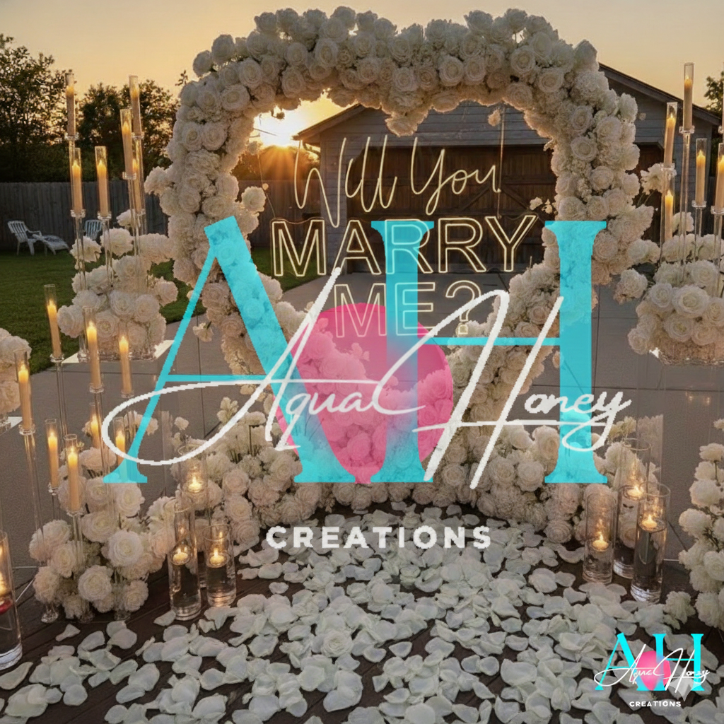 From breathtaking balloon arrangements to stunning money bouquets, personalized posters, custom wreaths, and dreamy romantic room setups— we bring your ideas to life! Whether it’s an Anniversary, Proposal, Wedding, Sweetest Day, Graduation, Prom Proposal, Baby Shower, Birthday, or any special event. Aqua Honey will create unforgettable experiences made just for you.